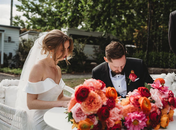This gallery highlights real weddings at The Homestead Berry, showcasing how flowers bring the vibes to the barn, ceremony lawn, and reception tables. From soft pastels in the summer to rich bold tones, each wedding reflects the couple’s unique style.