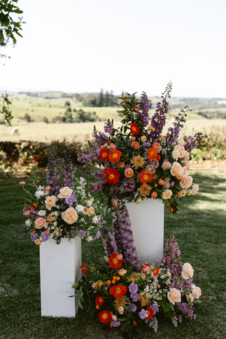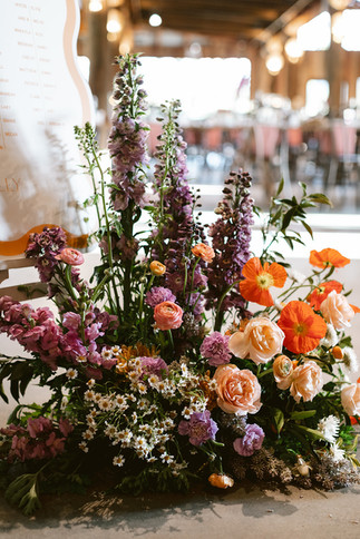 Molly loved a bright colour palette but wanted to tie into the bridesmaids lilac gowns. We decided on pops of orange with peach and lilac tones.